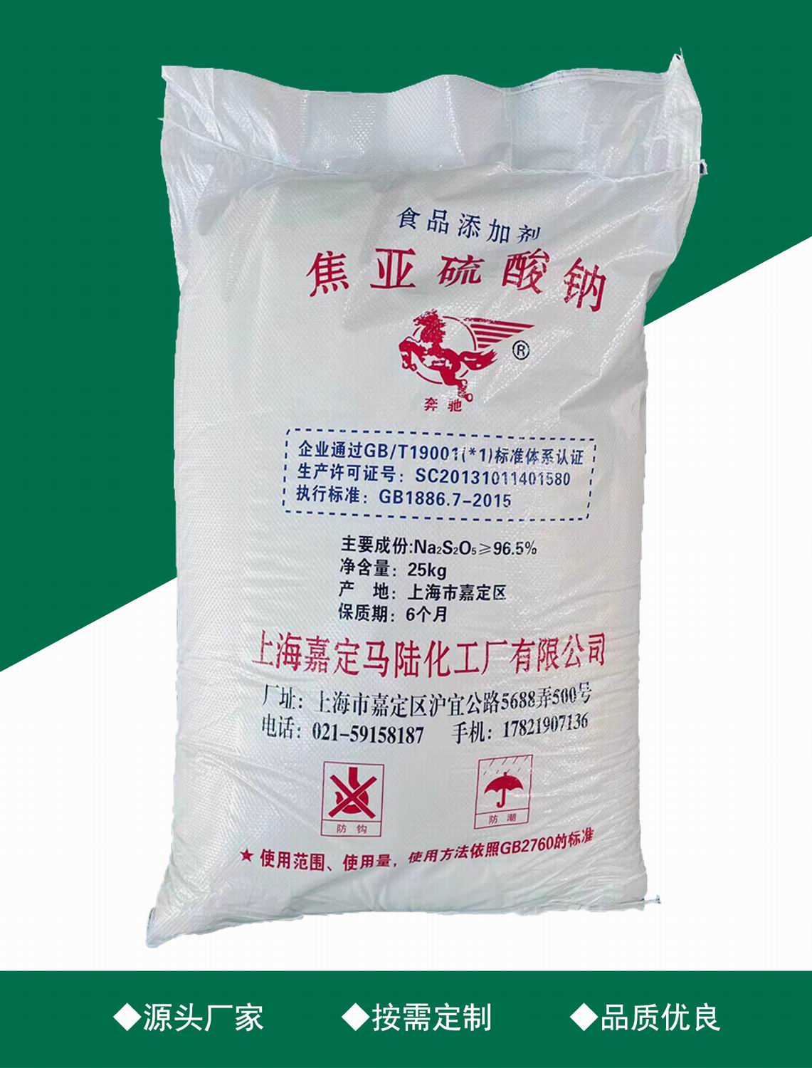 上海嘉定馬陸化工廠有限公司主營生產(chǎn),焦亞硫酸鈉、亞硫酸氫鈉等產(chǎn)品生產(chǎn),幾十年的專注焦亞硫酸鈉研發(fā)生產(chǎn),公司擁有完整、科學(xué)的質(zhì)量管理體系,為確保公司產(chǎn)品能夠長期立足于市場,增強客戶的粘性,可滿足客戶的非標定制需求,可提供產(chǎn)品各個用途的解決方案,公司重信譽、守合同、保質(zhì)量、快速發(fā)貨以,我們擁有專業(yè)的售前售中、售后團隊共同協(xié)作,確保用戶采購中的每個環(huán)節(jié)都能有滿意的體驗度。